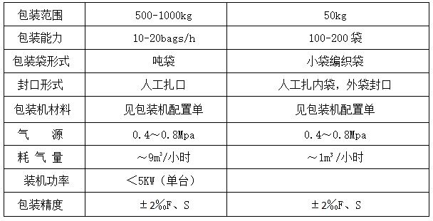 包裝速度:10-20袋/小時(噸包);100-200袋/小時(50公斤)